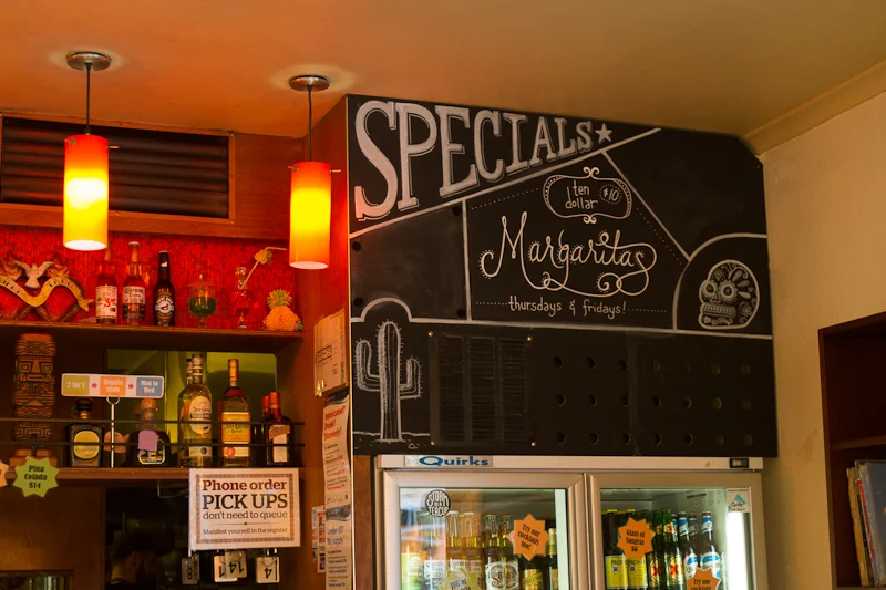 At first, the guys at Trippy Taco wanted me to create a template for their specials board that the employees could then write the daily specials on. After a few weeks, the bossman decided he loved the design of the board so much, he'd rather have me create some removable panels that could be swapped out on a daily basis instead of relying on his employees' artistic talents.