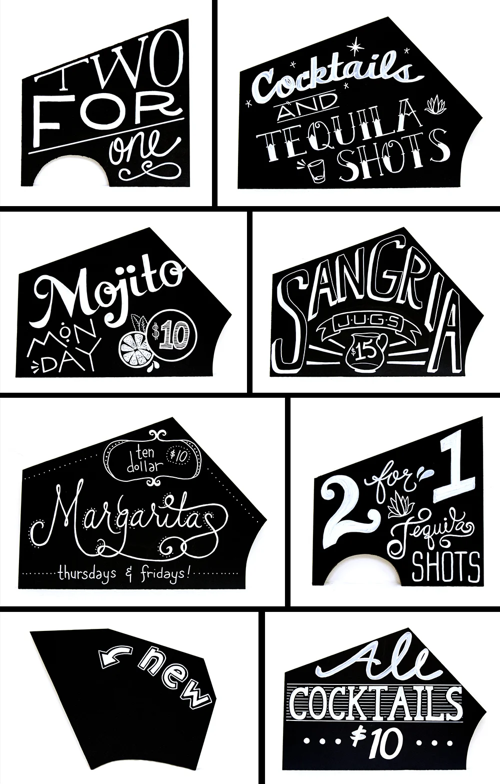 I've always had pretty neat handwriting (people I went to school with used to joke around and ask, "What font is that?") and I've always enjoyed creating stylized hand lettering. Up until recently I've just done it for personal projects like card making and gifts for friends, but after doing some hand lettering work on my friend Marion's menu board, another local business got in touch asking for my services.