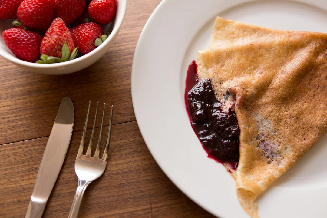 The next photoset I'd like to share was done for my good friend Marion, whom I've written about on my blog before. She runs a catering business and mobile crêperie called Les Crepes de Marion here in Melbourne, making sweet and savoury authentic Breton crêpes and galettes at parties, markets and school fetes. Everything she does is home made, including her salted caramel, chocolate ganache, and fruit jams, so for her shoot we went with more of a rustic feel: weathered wooden tabletop, soft lighting, and subdued colours.